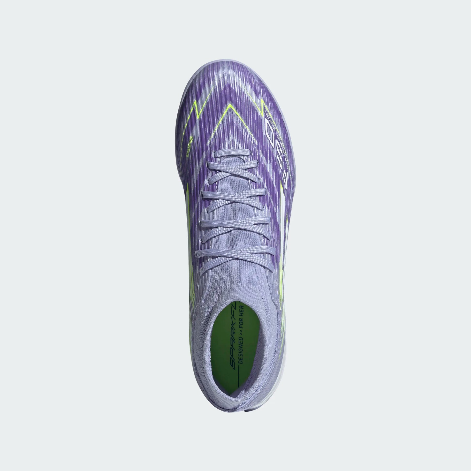 Designed for her. Light up the pitch in supportive F50 Sparkfusion cleats created specifically for female athletes. These adidas League cleats have a soft Fiberskin upper for comfort, a specially shaped last for the perfect fit, and a lug rubber outsole for traction on artificial turf. The result? Footwear that will help you fulfill your soccer potential.
